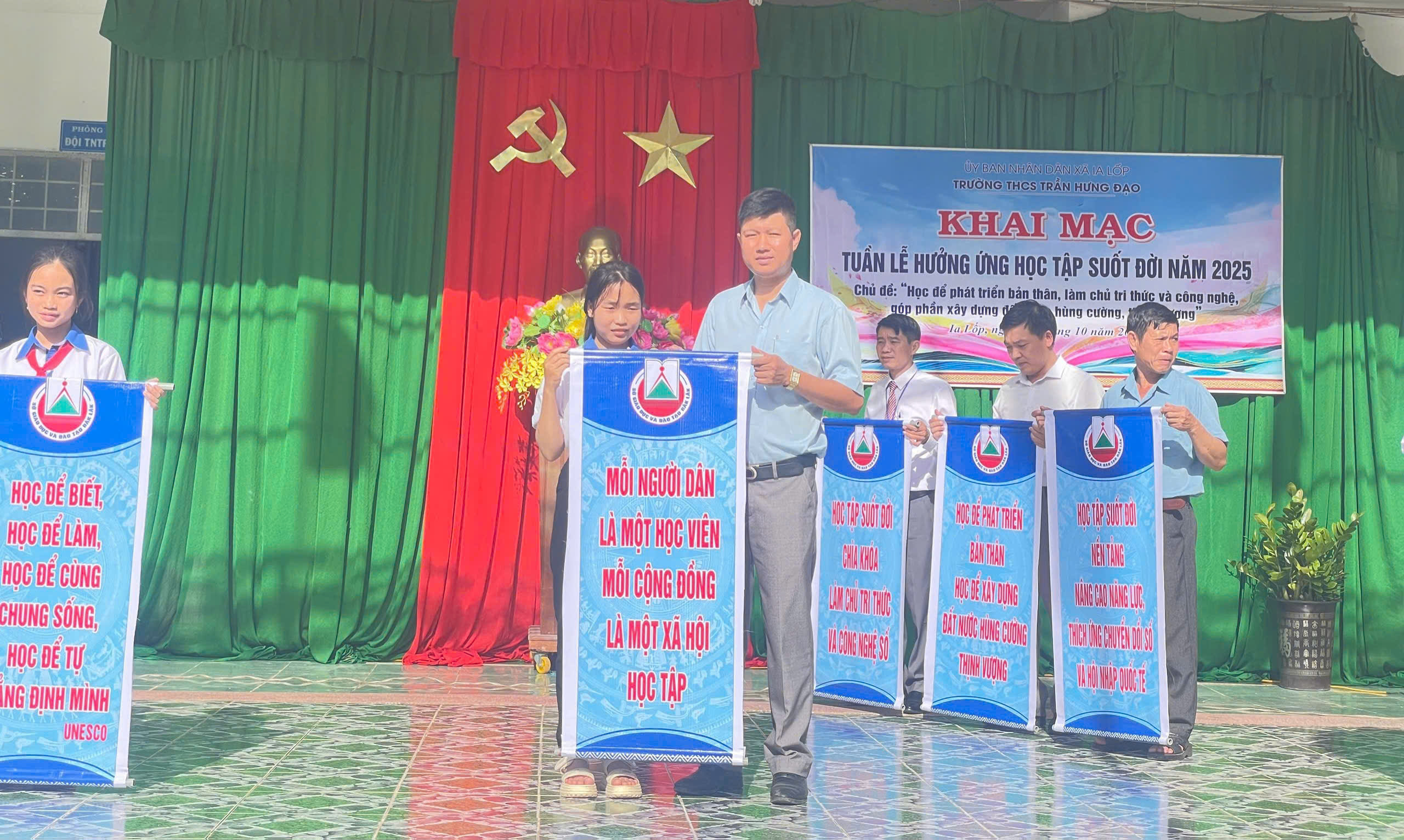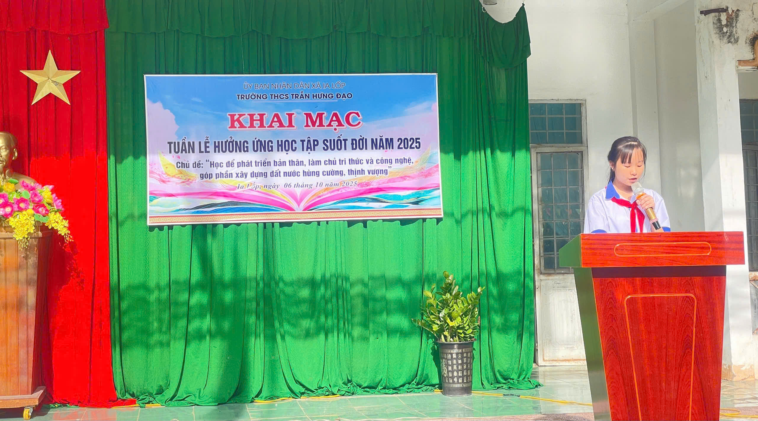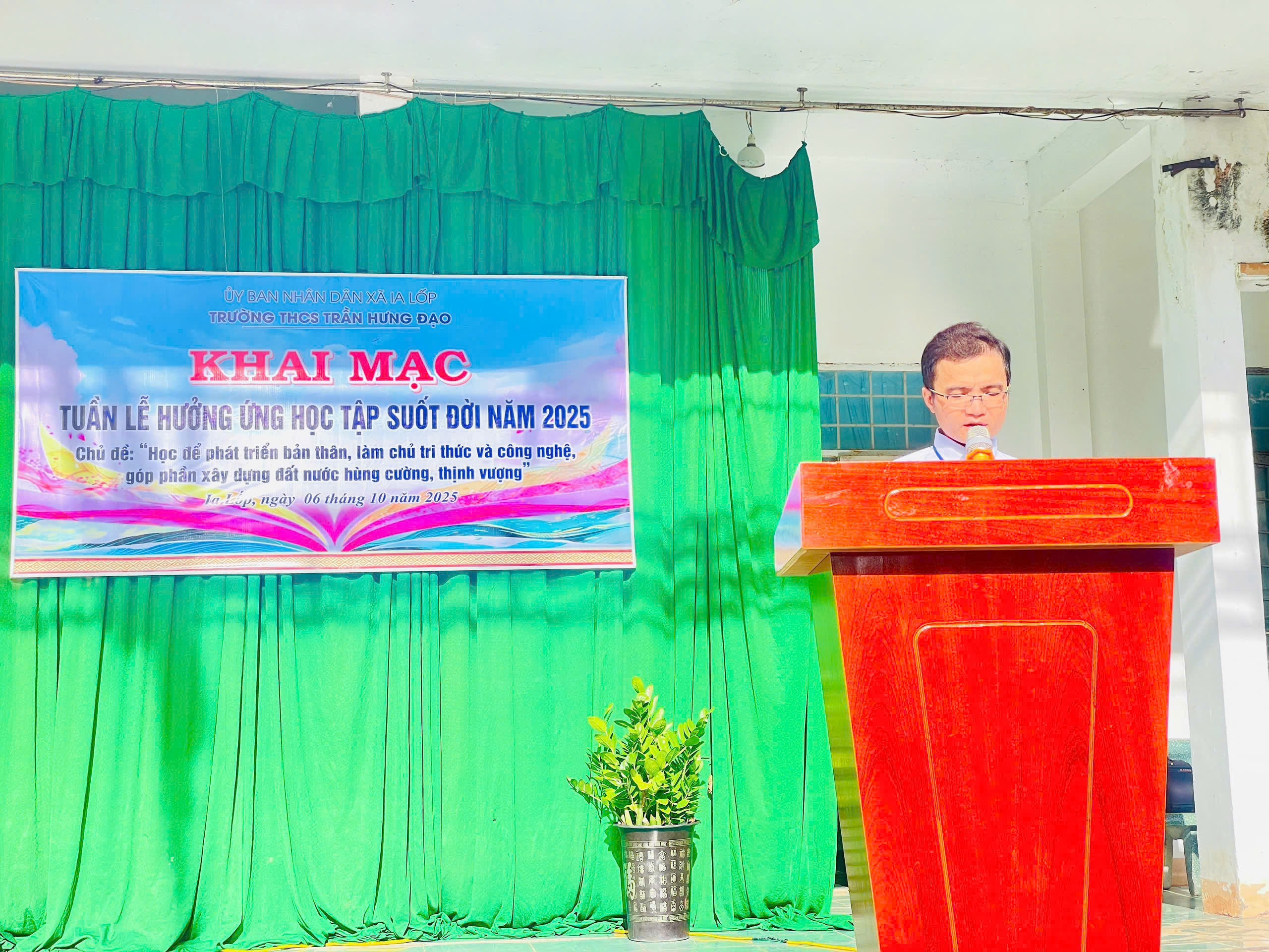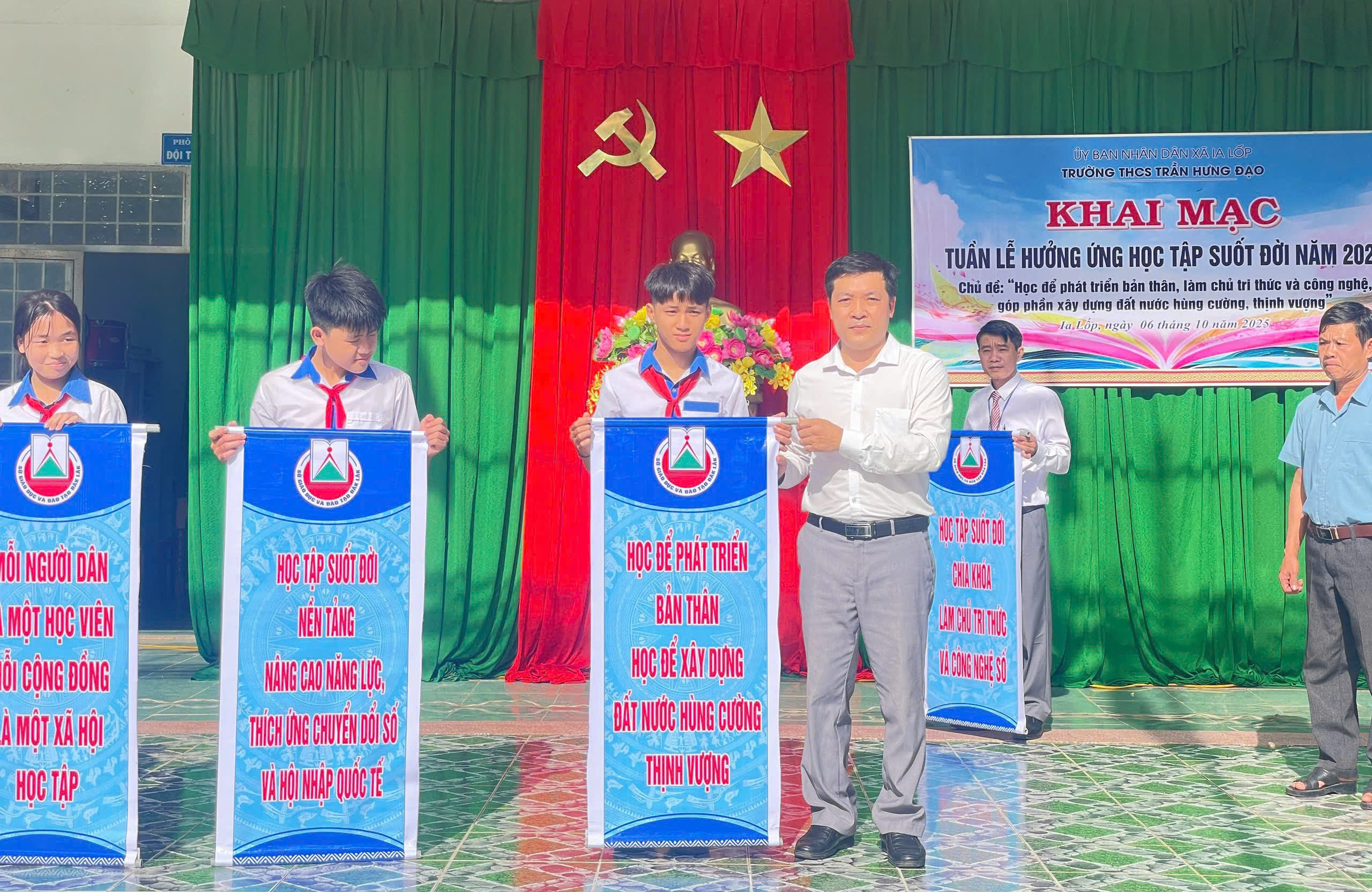 Sáng 06/10/2025, tại trường THCS Trần Hưng Đạo, UBND xã Ia Lốp tổ chức khai mạc Tuần lễ hưởng ứng học tập suốt đời năm 2025 với chủ đề: Học để phát triển bản thân, làm chủ tri thức, công nghệ, góp phần xây dựng đất nước hùng cường, thịnh vượng. Buổi khai mạc được tổ chức trực tiếp tại THCS Trần Hưng Đạo xã Ia Lốp, tỉnh Đắk Lắk.