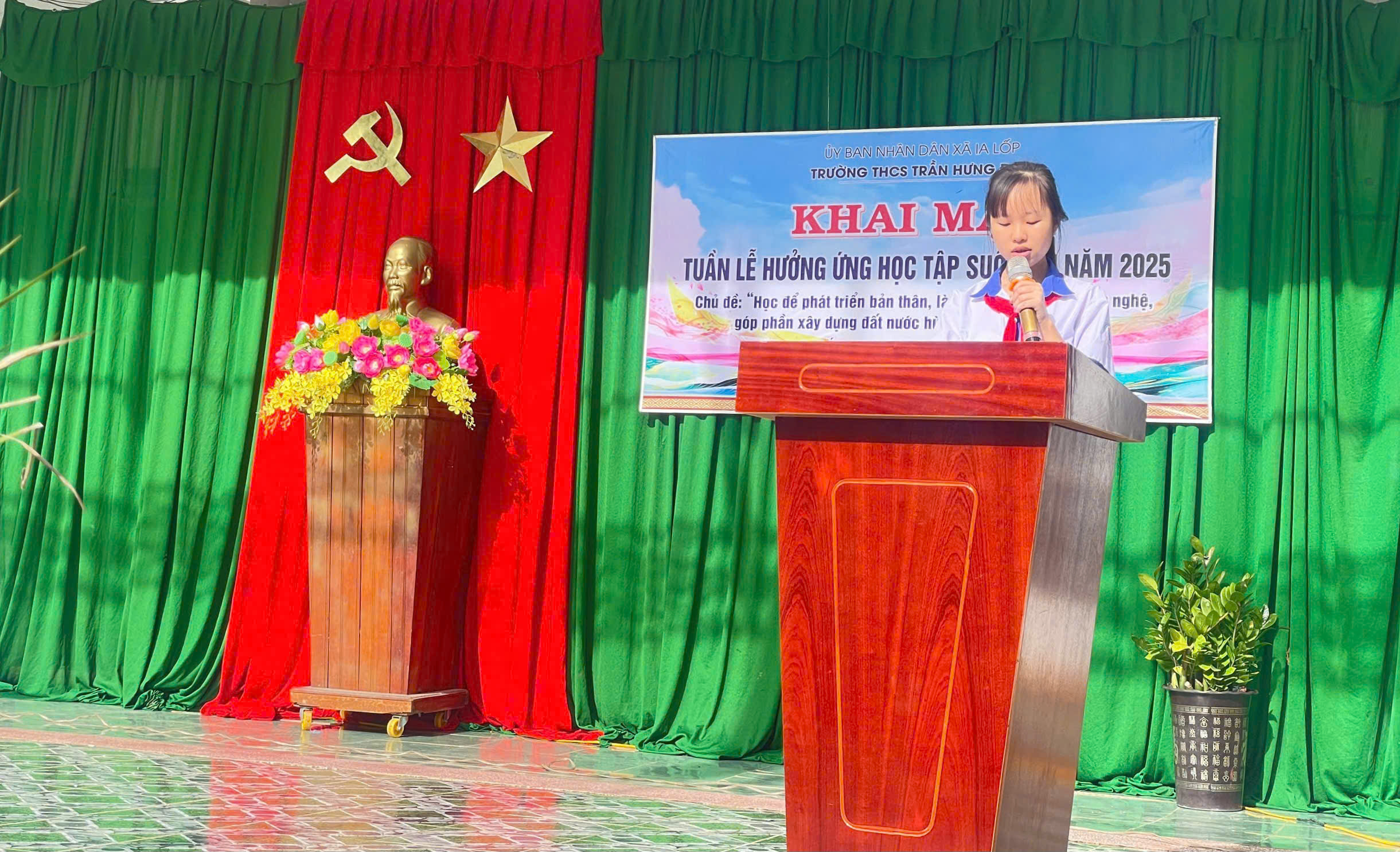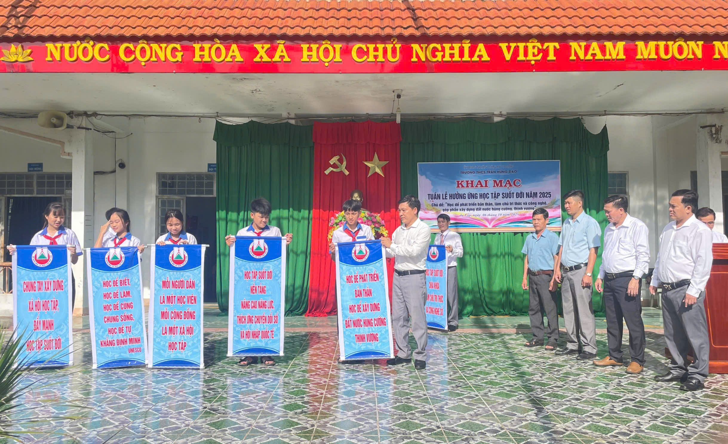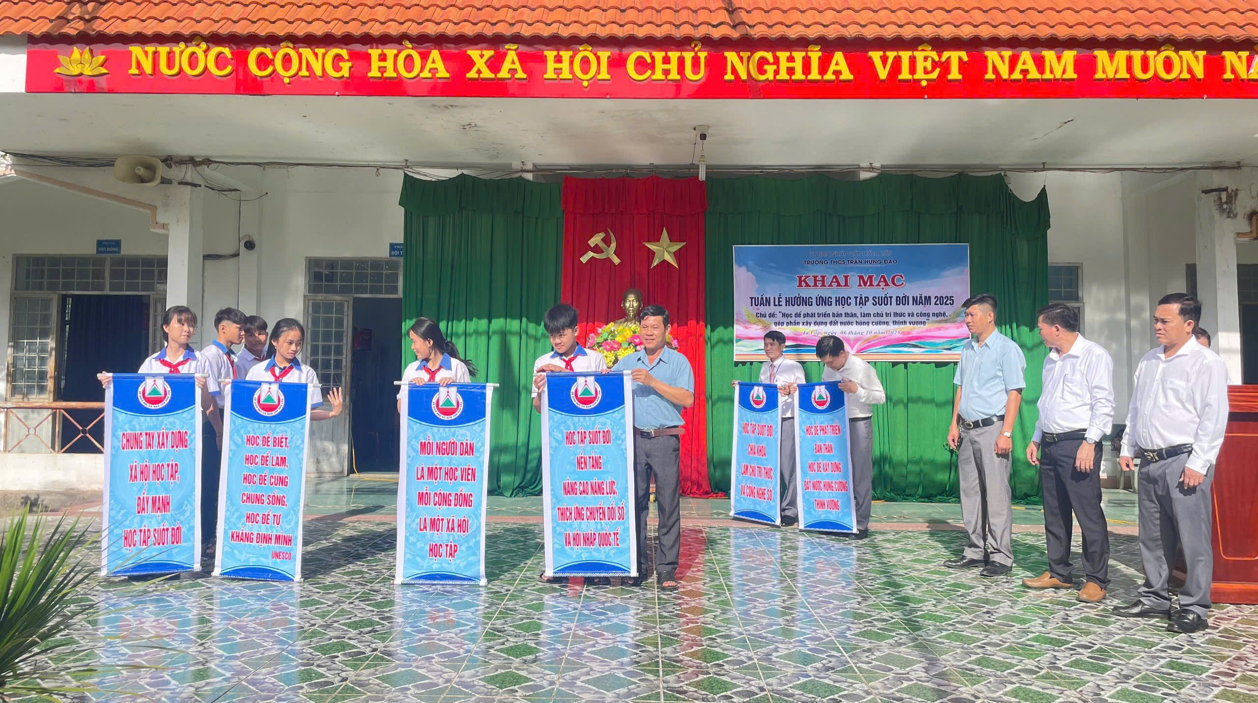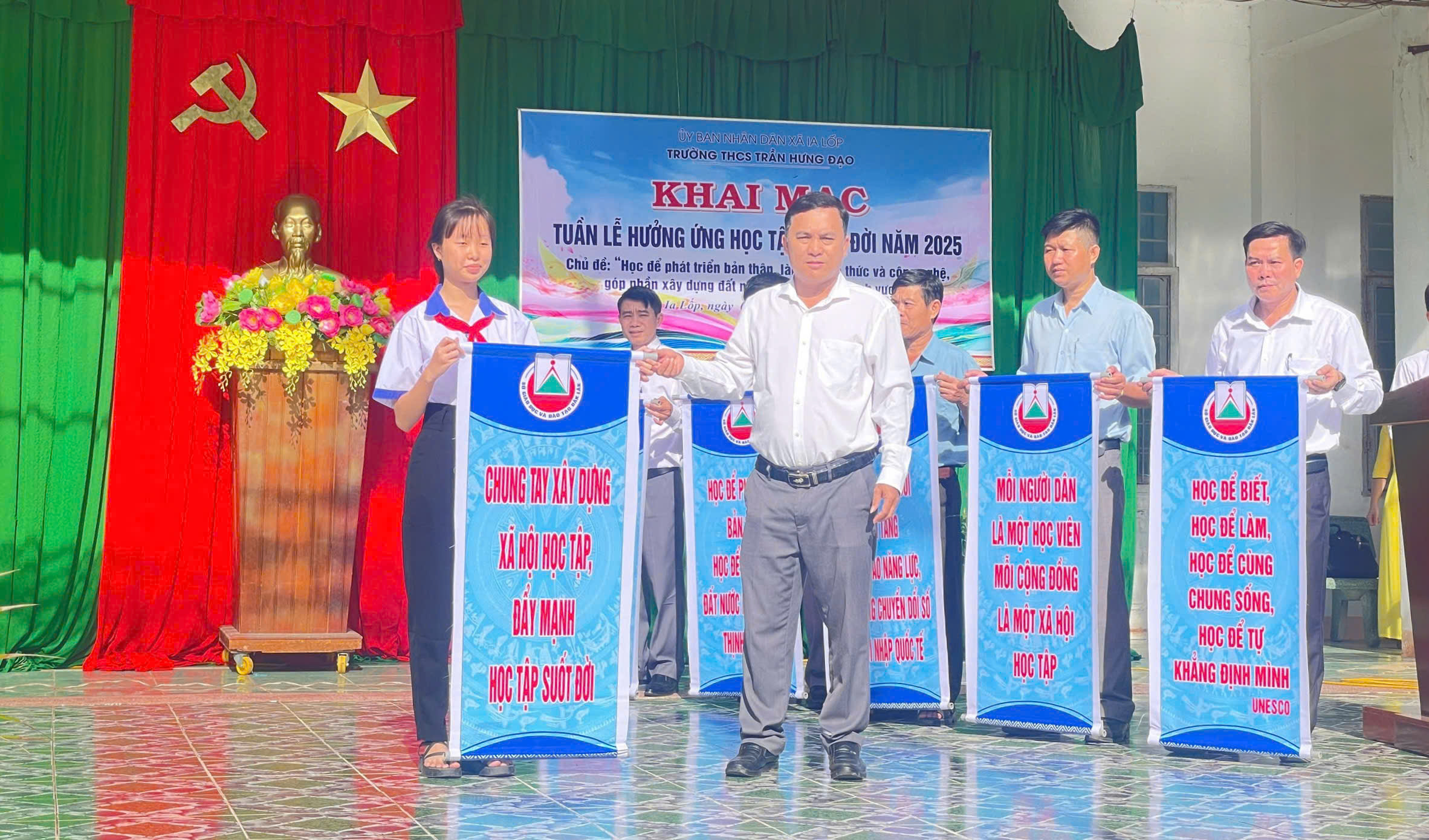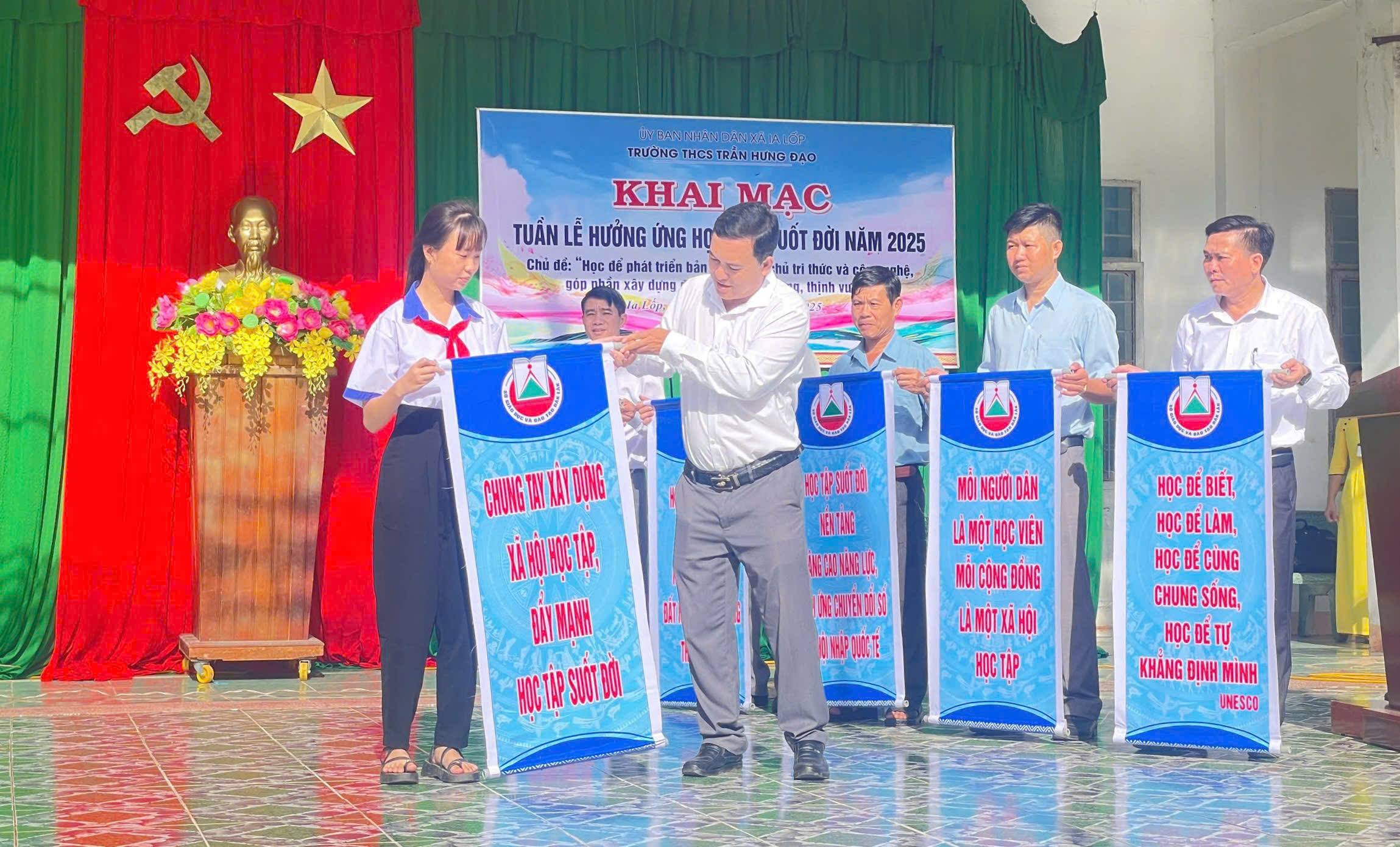 Sáng 06/10/2025, tại trường THCS Trần Hưng Đạo, UBND xã Ia Lốp tổ chức khai mạc Tuần lễ hưởng ứng học tập suốt đời năm 2025 với chủ đề: Học để phát triển bản thân, làm chủ tri thức, công nghệ, góp phần xây dựng đất nước hùng cường, thịnh vượng. Buổi khai mạc được tổ chức trực tiếp tại THCS Trần Hưng Đạo xã Ia Lốp, tỉnh Đắk Lắk.